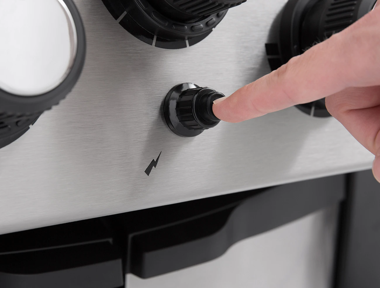 - Drehspieß-Brenner mit 4,4 kW und Seitenbrenner mit 2,7 kW