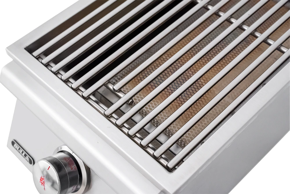 Statten sie ihre individuelle Außenküche mit einem hochwertigen Infrarot Seitenbrenner aus. Der BULL Einbau Seitenbrenner sorgt für zusätzlichen Grillfläche. Mit extra hohen Temperaturen zaubert der Infrarotbrenner wunderbare Brandings auf ihr Fleisch und verleiht ihm intensive Röstaromen.