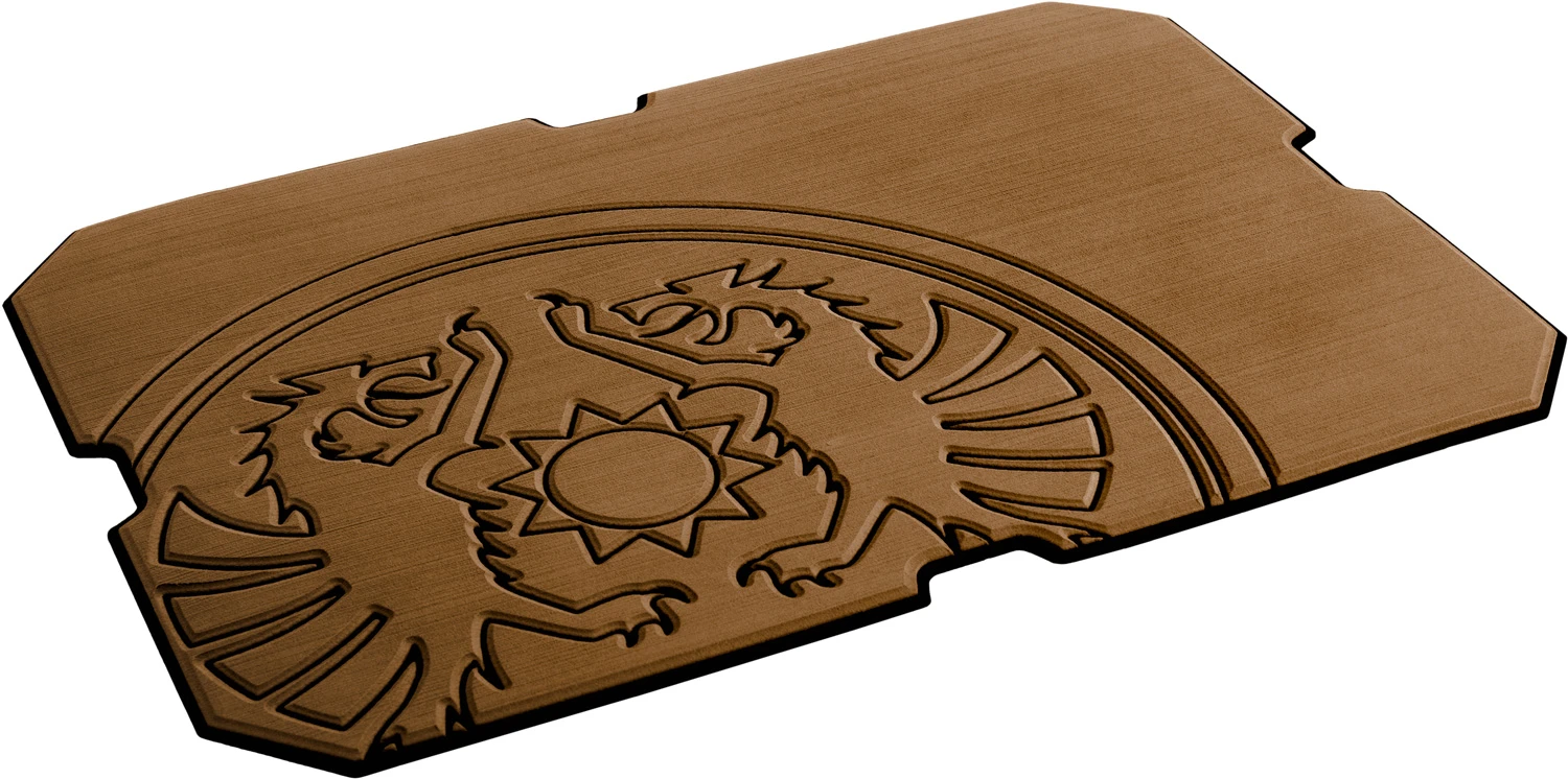 - 1 x Haft-Auflage in braun mit Drachenemblem