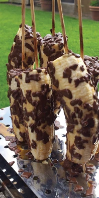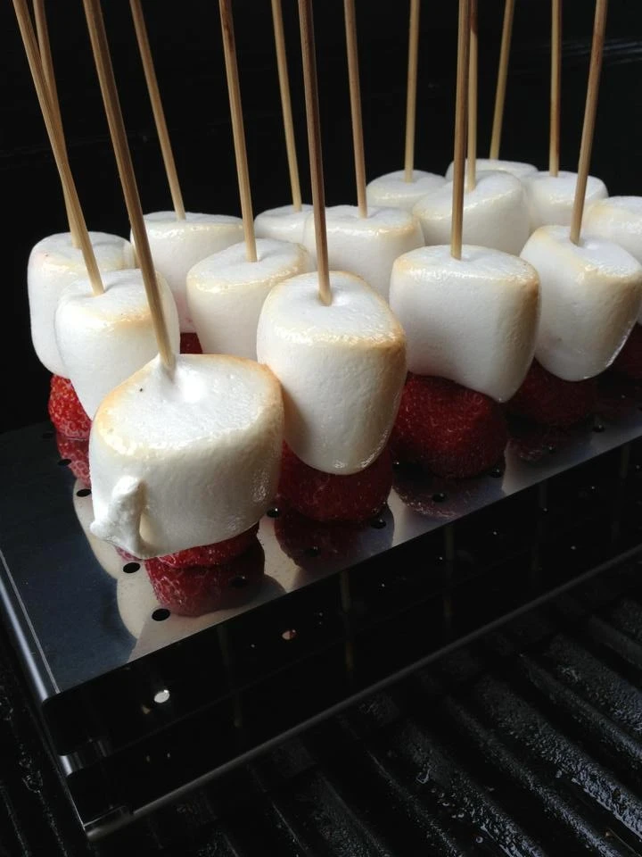 Dabei ist der große Vorteil, dass die Spieße hochkant im Halter stehen und so zum einen schonender zubereitet werden können und zum anderen nicht so einfach verbrennen, wie das beim normalen Grillen auf dem Rost der Fall ist.