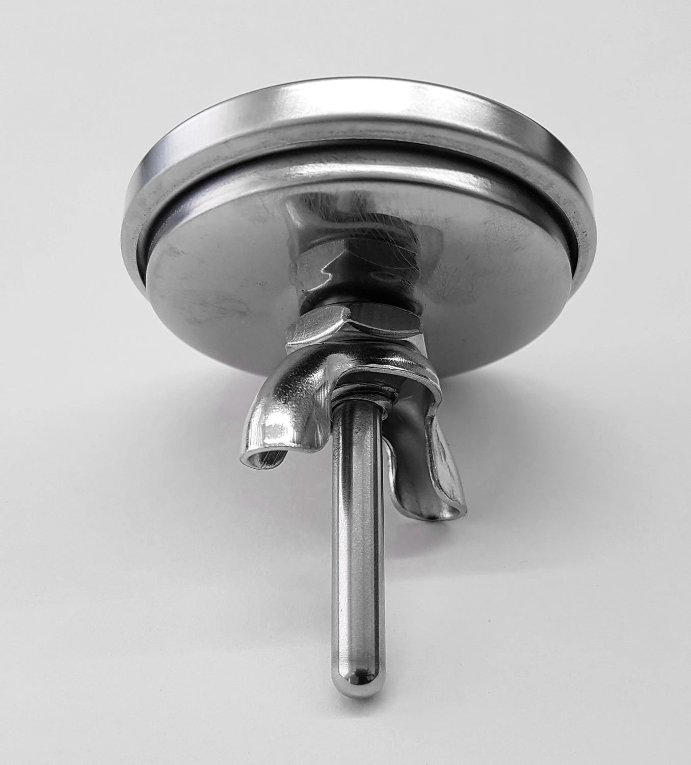 Das Grillthermometer wird mit einer Überwurfmutter von Innen befestigt.